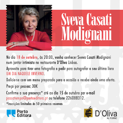 No dia 18 de outubro, às 20:00, realiza-se no restaurante D’Oliva Lisboa um jantar de boas-vindas à autora Sveva Casati Modignani!